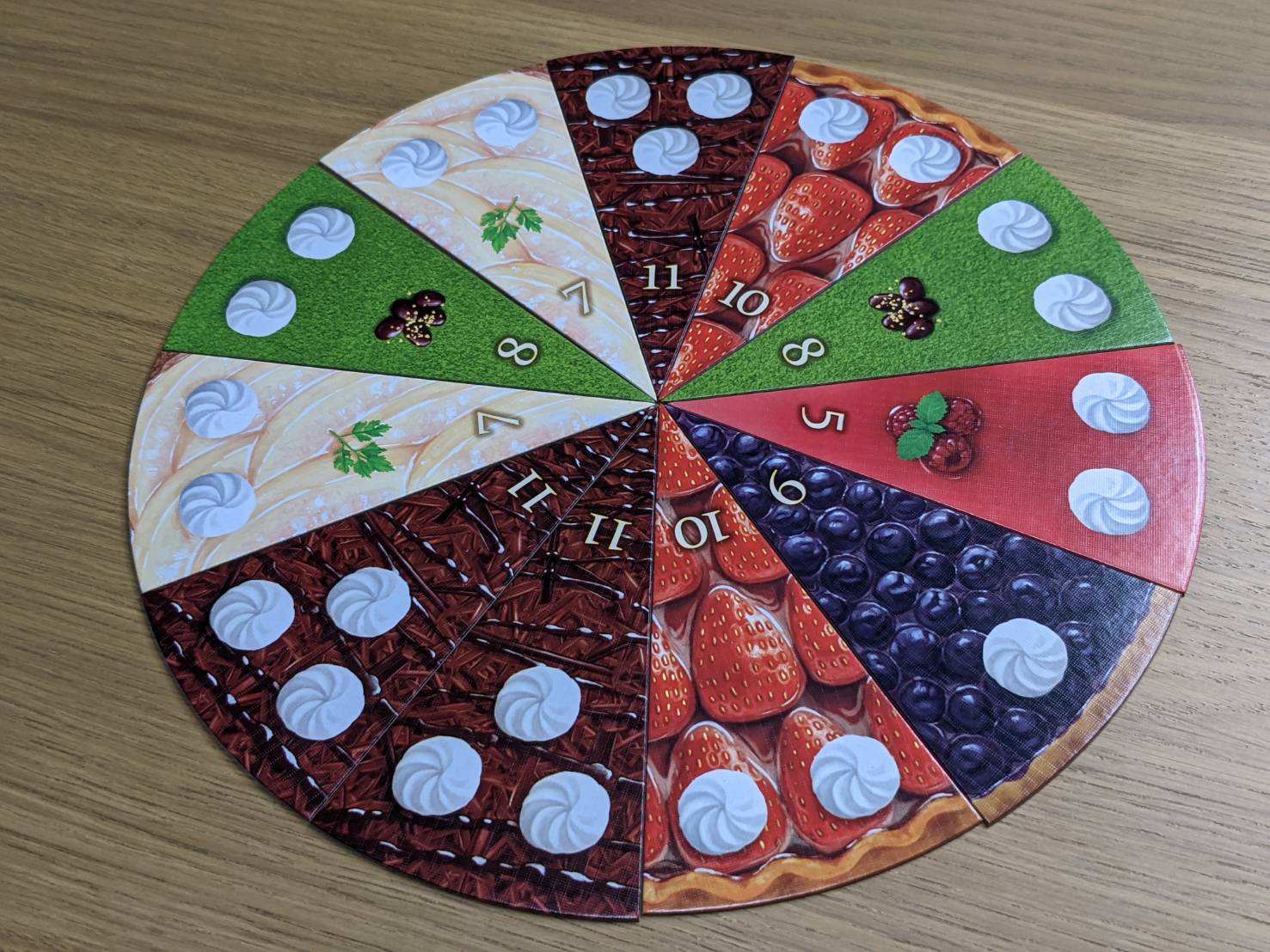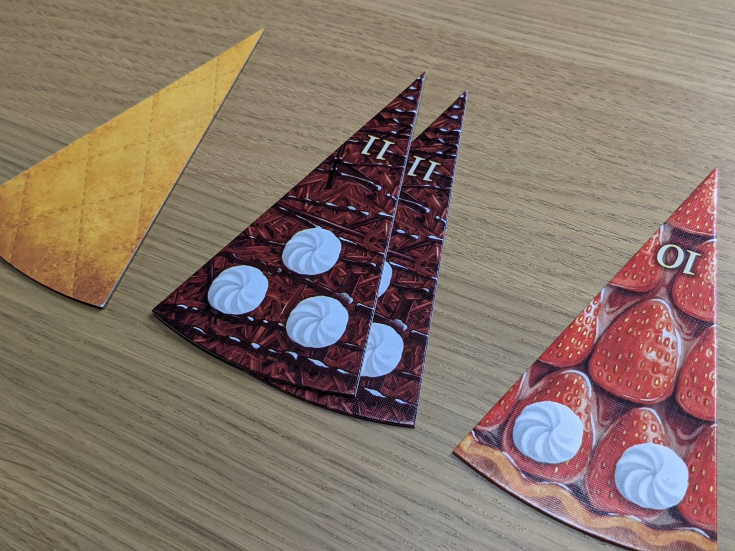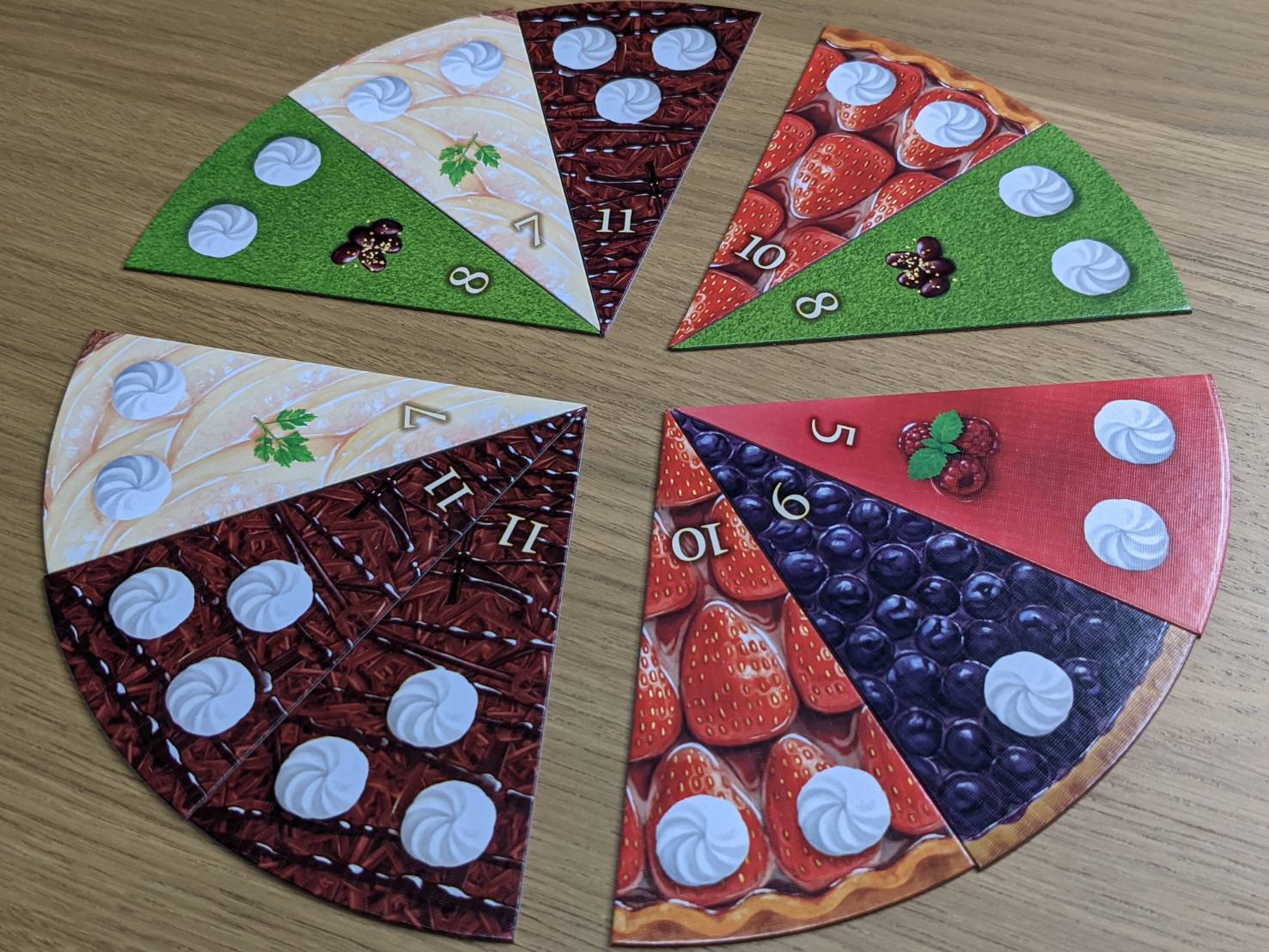 それぞれで一番多く持っていたプレイヤーが、そのケーキに書いてある数字分の点数を獲得する。