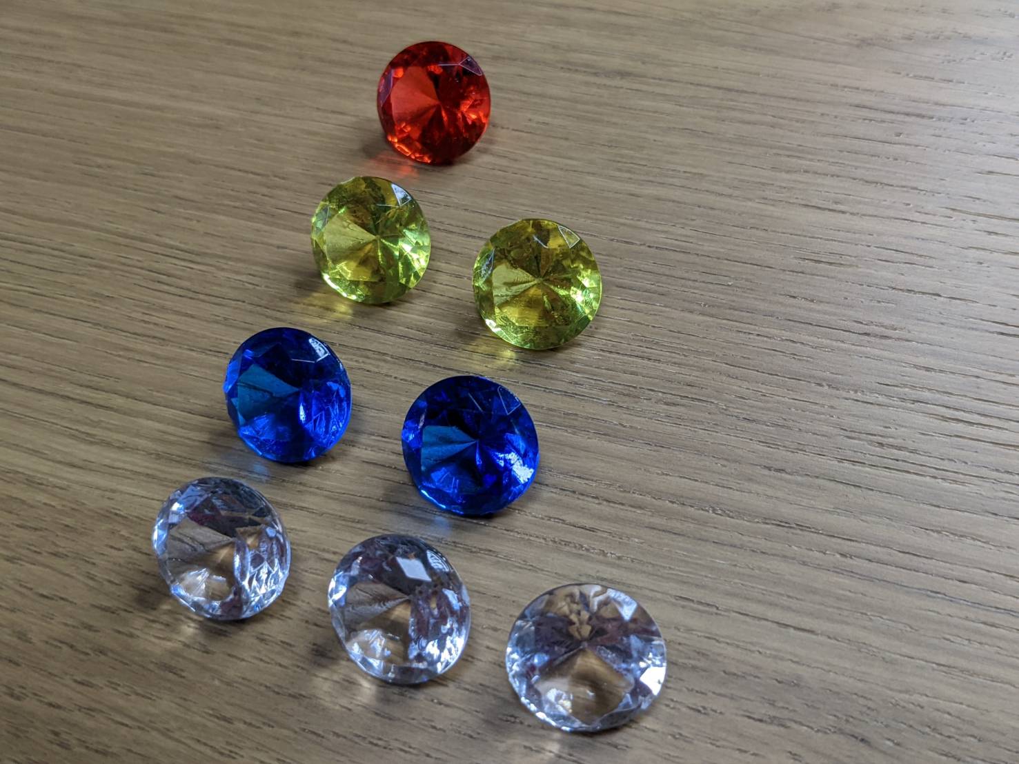 ・宝石袋に人数に対応した数の宝石を入れてよく混ぜておく。