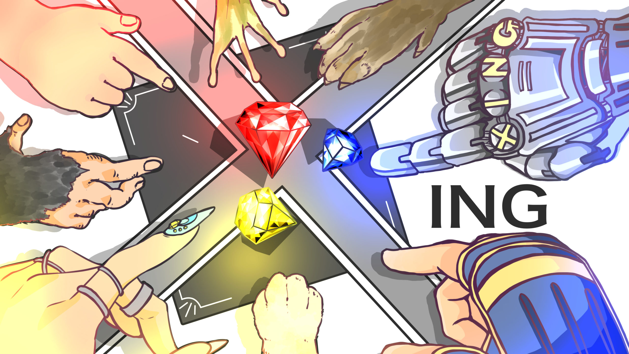 指を差した場所が誰とも被らなければ、全ての宝石を自分の倉庫に移して「仮獲得」することができる。