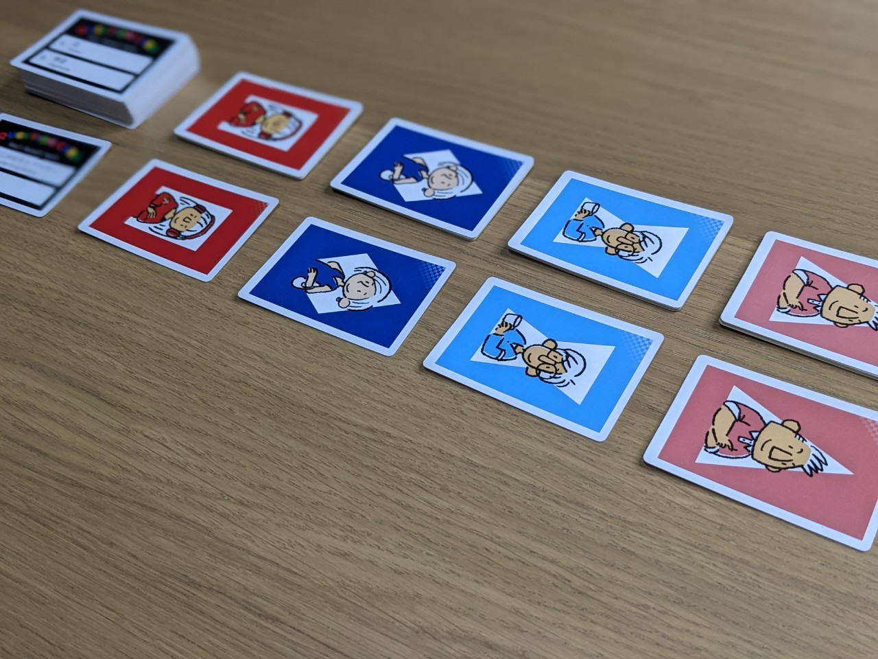 ・各プレイヤーは裏面が同じ色カードをもらう。
