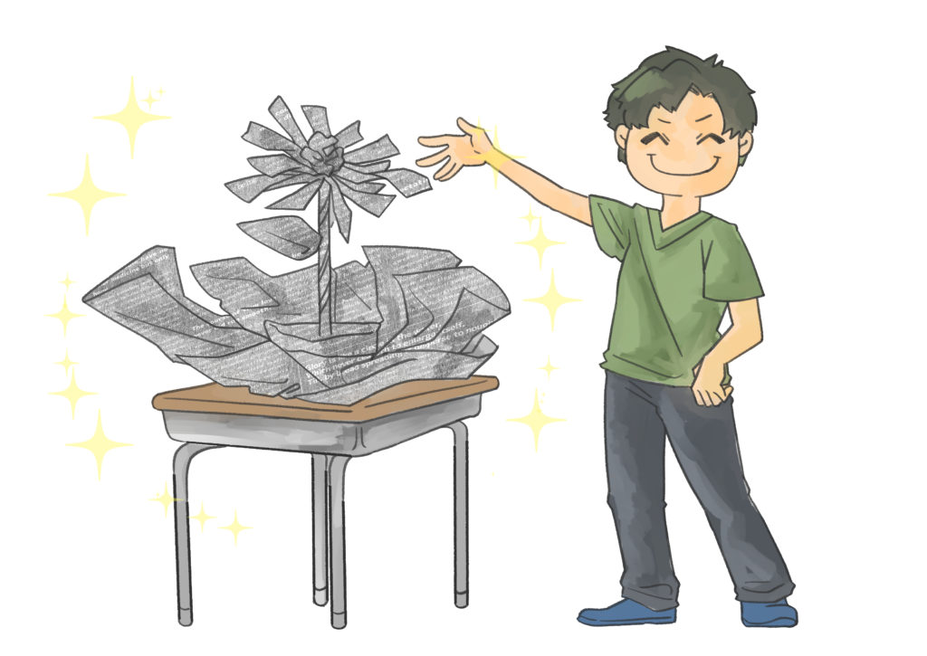 新聞紙でファッションショー!? 手間なくカンタンにクラスが盛り上がる、梅雨&猛暑時の楽しい室内学級レク!の挿絵を担当させていただきました。