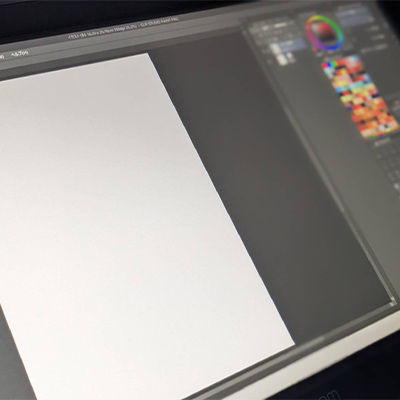 主に着彩の時に使用する大きな板タブレットです。全体の色のバランスを見ながら、作業画面を手で隠すことなく着彩することができます。