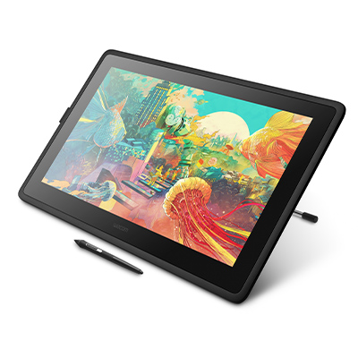 主に線画を描くときに使用する、22インチの大きな液晶タブレットです。作業スペースが広くなることは、効率化につながります。